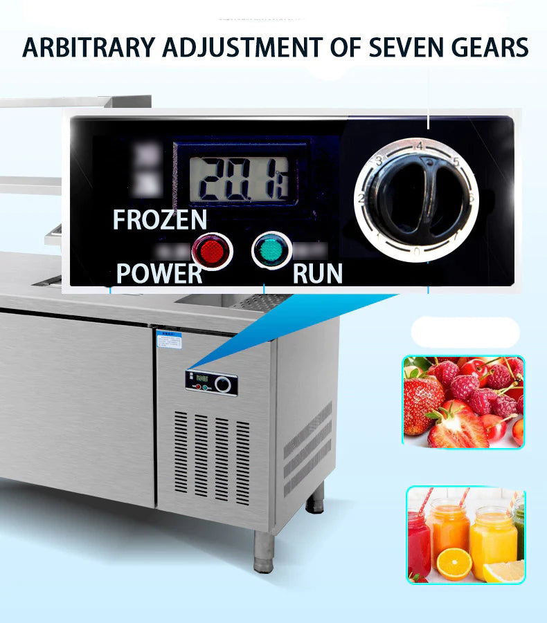 Bubble tea bar with refrigeration and boba cup bubble tea ,Customize the operating table to have a refrigeration/freezing function, so that it is convenient to store fresh ingredients and unused raw materials. The refrigerating room is mainly for keeping fresh, while the freezing area is used for quick-frozen food, which can be stored for a long time, but if you often store something with relatively large moisture, you need to defrost and deicing regularly.Bubble tea bar with refrigeration and boba cup bubble tea
