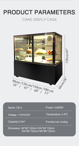 4.Microcomputer automatically controls temperature, defrosting, and liquid crystal display cabinet temperature. Right angle cake display freezer