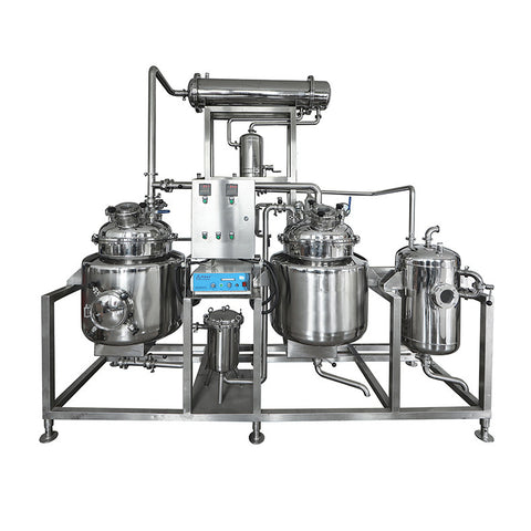 The extraction tank is a multi-purpose equipment designed for traditional Chinese medicine factories, boiling and extraction processes. It can extract, recover alcohol and separate volatile oil in this process. In addition to the main equipment of the extraction tank, this equipment is also equipped with a foam catcher, a cooler, an oil-water separator, etc. These devices are made of high-quality stainless steel wherever they come into contact with the drug. The extraction process of this equipment is completed in a sealed and recyclable system, and the organic solvent is recovered from the waste residue at the same time.