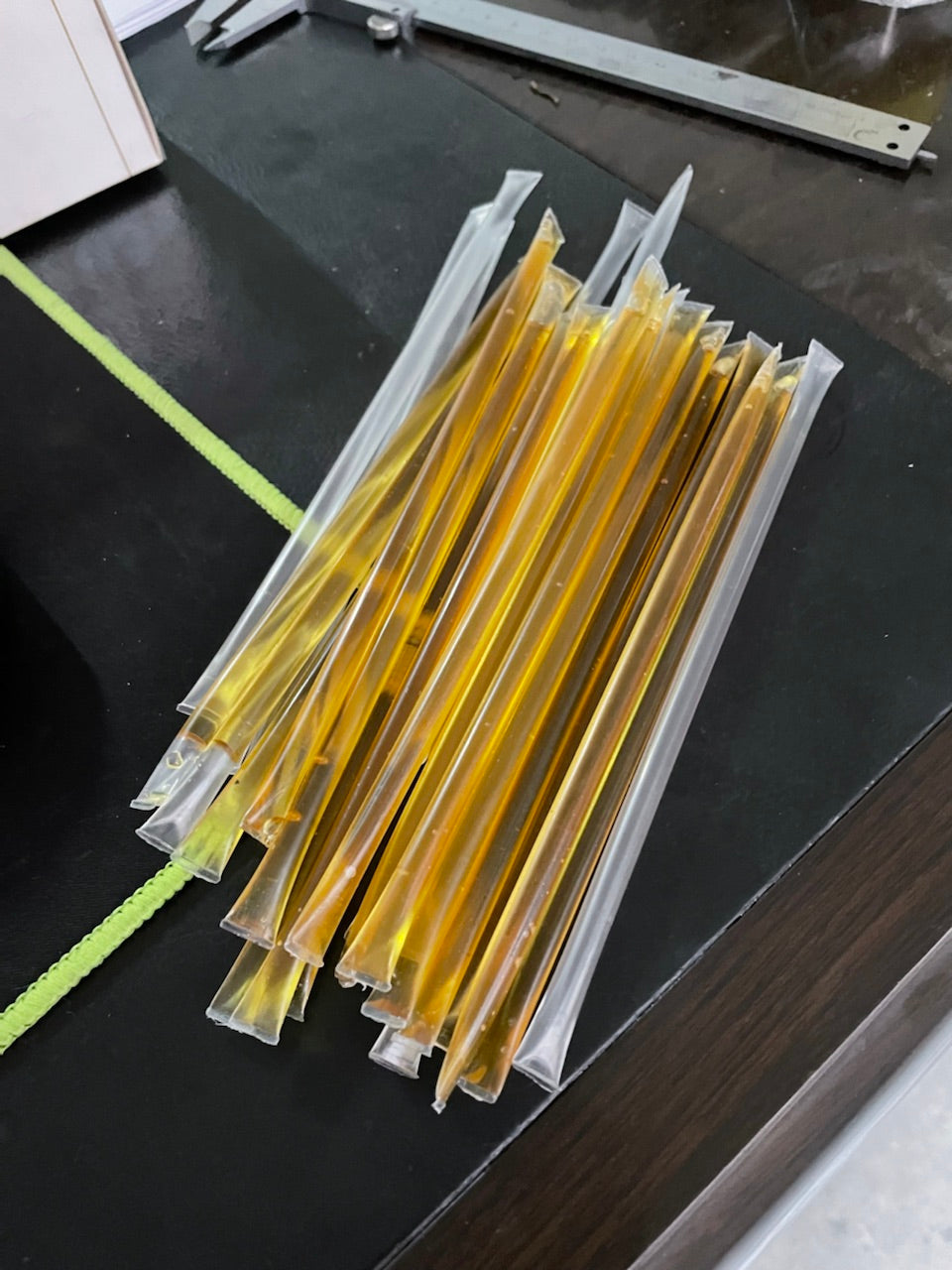 This honey stick machine can automatically complete empty straw entry, filling, double-end sealing or single-end sealing, and output, suitable for honey factory packaging honey.