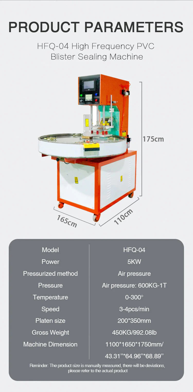 Used for APET,PETG,PVC,PET, etc material usage of double blister sealing, blister paper card packing, toothbrush packing, with EVA cloth leather, leather, PU material welding and fusing, also be used in PVC, APET, PETG, PP sheet of soft crease box production line.
