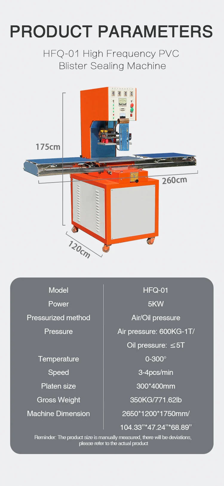 Used for APET,PETG,PVC,PET, etc material usage of double blister sealing, blister paper card packing, toothbrush packing, with EVA cloth leather, leather, PU material welding and fusing, also be used in PVC, APET, PETG, PP sheet of soft crease box production line.