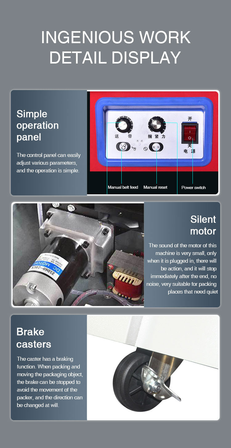 2.The sound of the motor of this machine is very small, only when it is plugged in, there will be action, and it will stop immediately after the end, no noise, very suitable for packing places that need quiet.