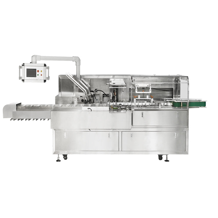 This cartoning machine is suitable for boxing and packaging of cosmetics, medicines, food, hardware, etc. It can automatically complete the folding of instructions, unfold the carton, box items, print batch numbers, and seal. Using PLC control, photoelectric monitoring of the movement of each part, if there is an abnormality in operation, it can automatically stop and display the cause, so as to eliminate the fault in time.