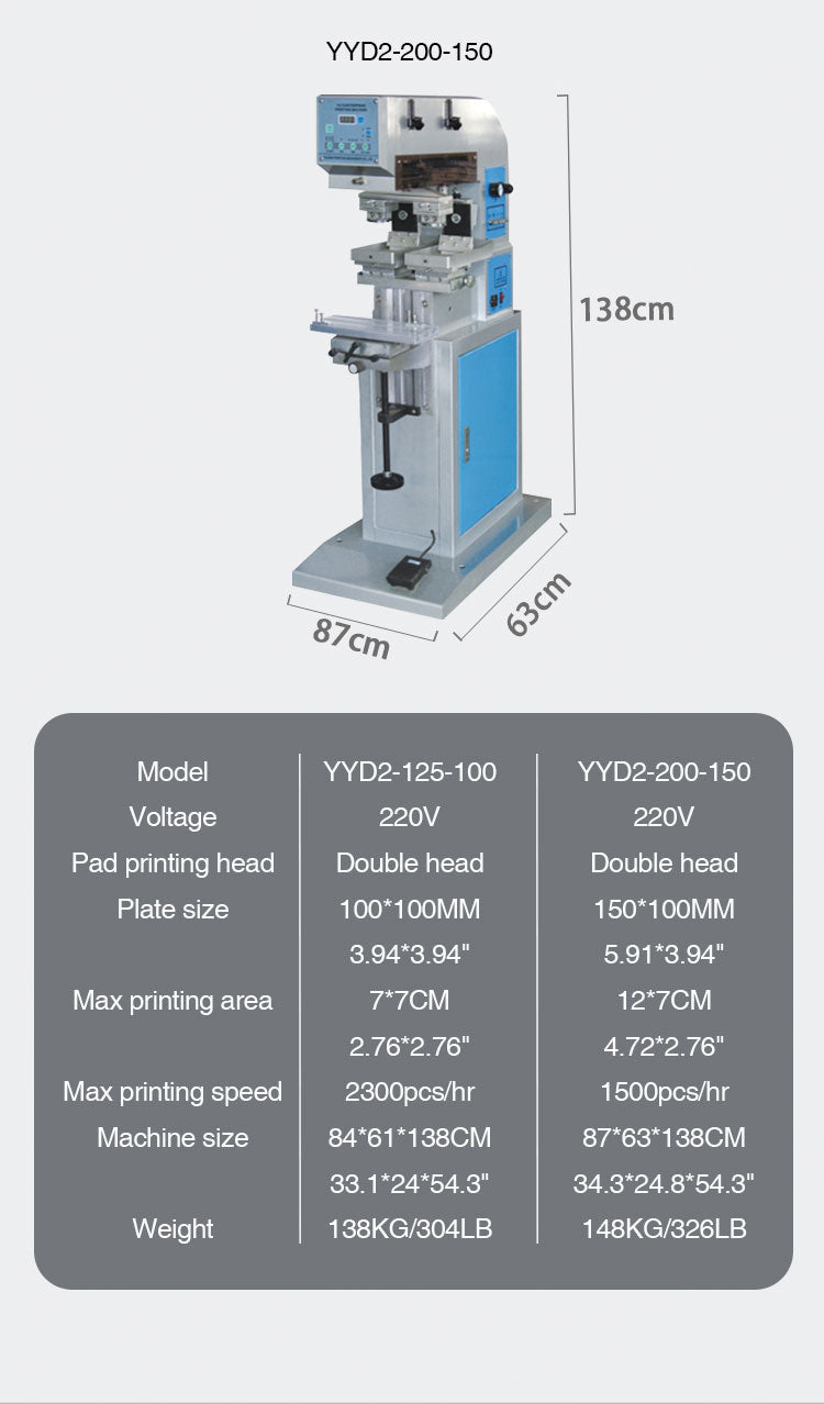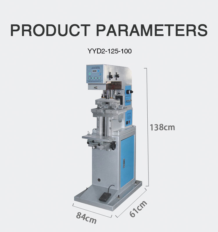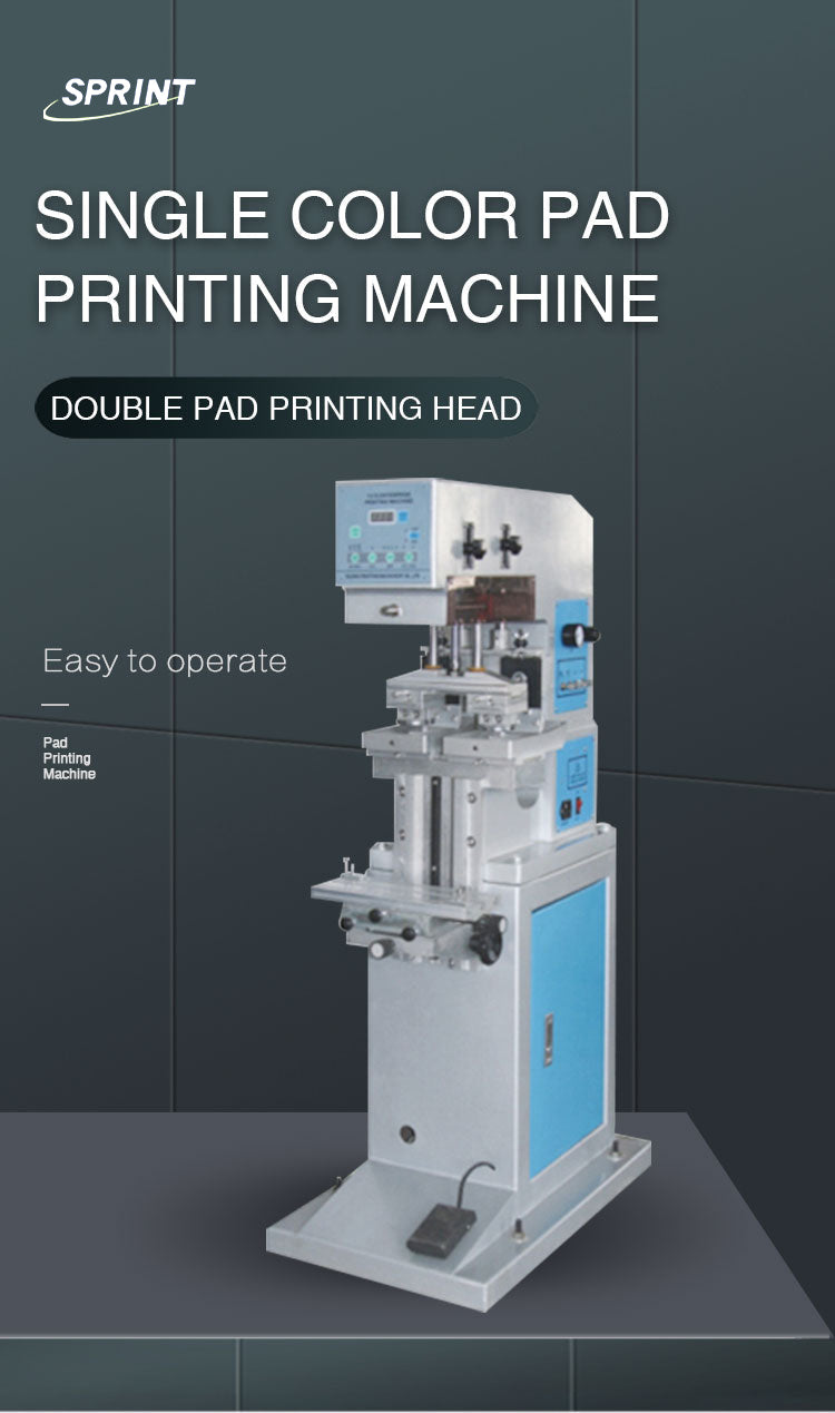 This double head single color pad printing machine is oil disc structure,simple operation, favored by users of various industries, used in plastic, hardware, electronics, gifts, toys and other industries of products on the surface of LOGO, character, pattern printing.