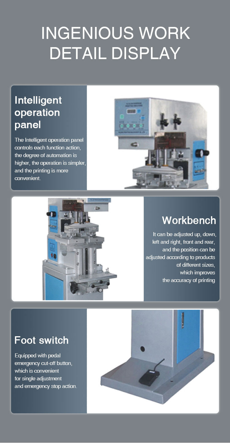 4. Pad and printing stroke are easily adjustable for different printing requirements.