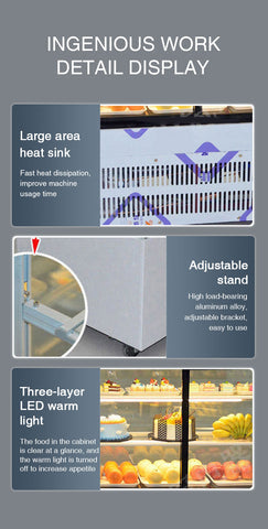 4.Microcomputer automatically controls temperature, defrosting, and liquid crystal display cabinet temperature. Right angle cake display freezer