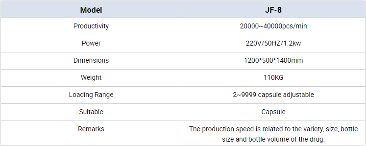 This capsule counting machine adopts advanced vibration and multi-channel feeder, computer control, dynamic scan counting, transfer the bottle automatically, system test automatically. The machine With Error alarm, Stop automatically function and other advanced technology. This machine designed with GMP standard. Compose the light, electric machinery to one set, which is suitable for tablet or capsule counting and filling in pharmaceutical or food business.