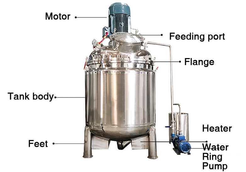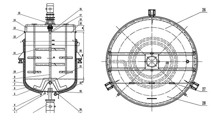 | Volume (L) | Motor power (kw) | Barrel diameter (mm) | Barrel height (mm | Speed (r/min) | Outlet diameter (DN) | Outlet height (mm) | Heating power (kw) |