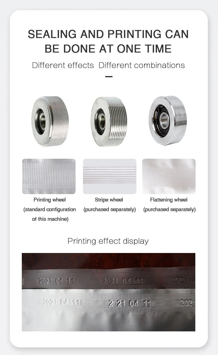 Notice: This machine is standard with printing wheel. If need stripe wheel and flattening wheel need to buy additional.