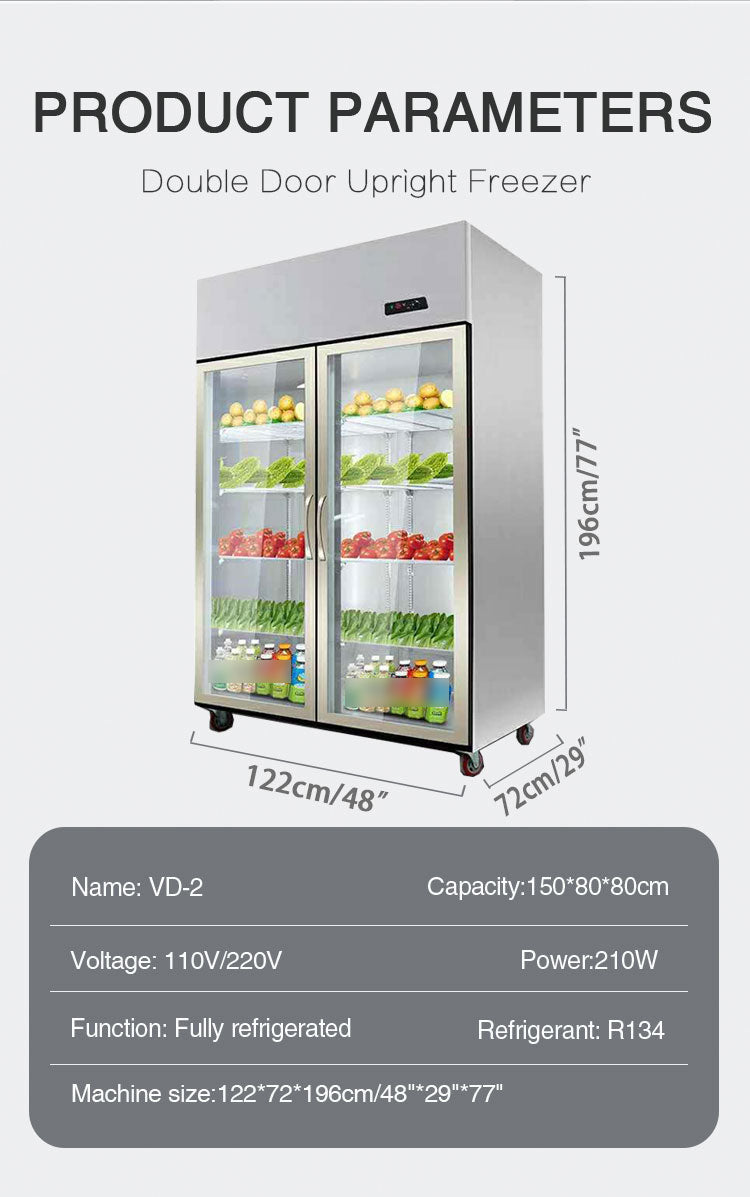 Vertical Beverage Beer Vegetable Display Freezer, commonly known as beverage display cabinets, also called beverage refrigerators, beverage freezers, and beverage refrigerated display case, are used in shopping malls or convenience stores to refrigerate and display beverages. The composition of beverage cabinets is composed of refrigeration systems, lighting systems and boxes. The system consists of compressorcondenserevaporatorexpansion valve or capillary copper tube. The material of the box is color steel sheet and painted sheet, and the material in the middle of the sheet is made of polyurethane foam.vertical beverage beer vegetable display freezer
